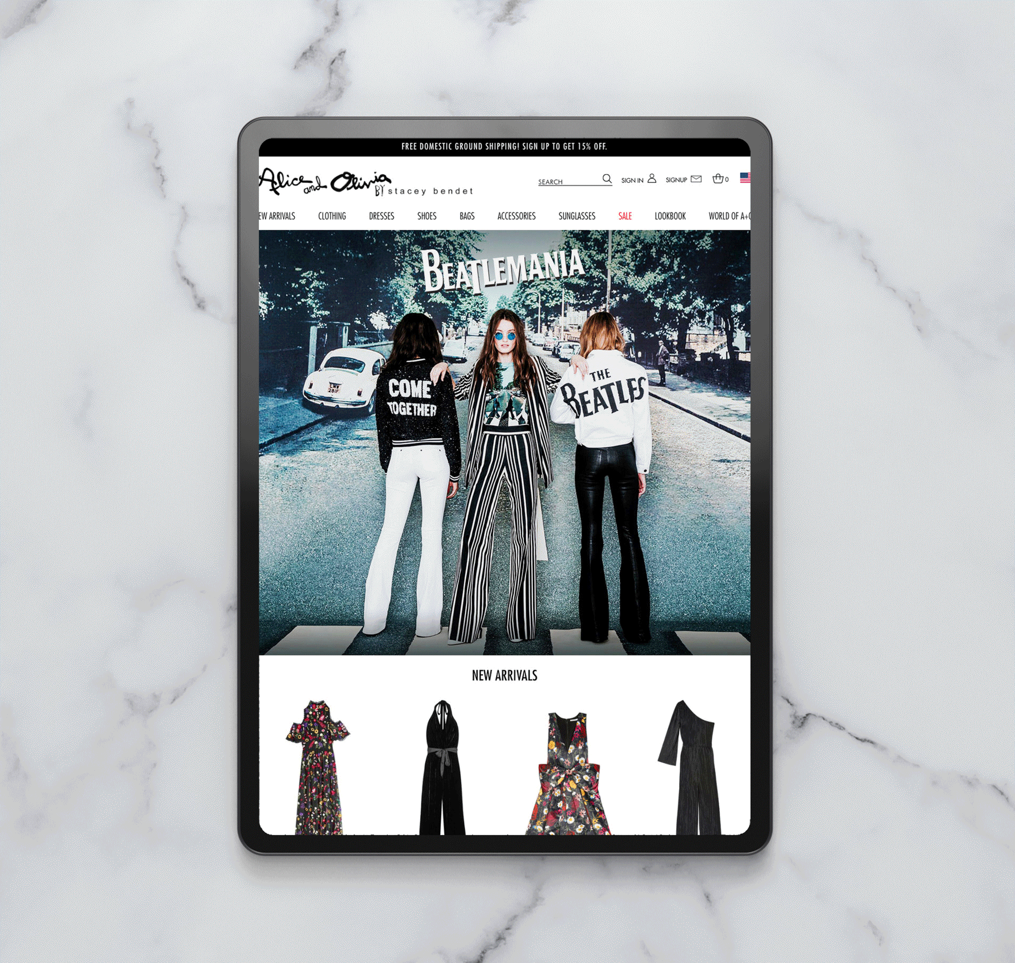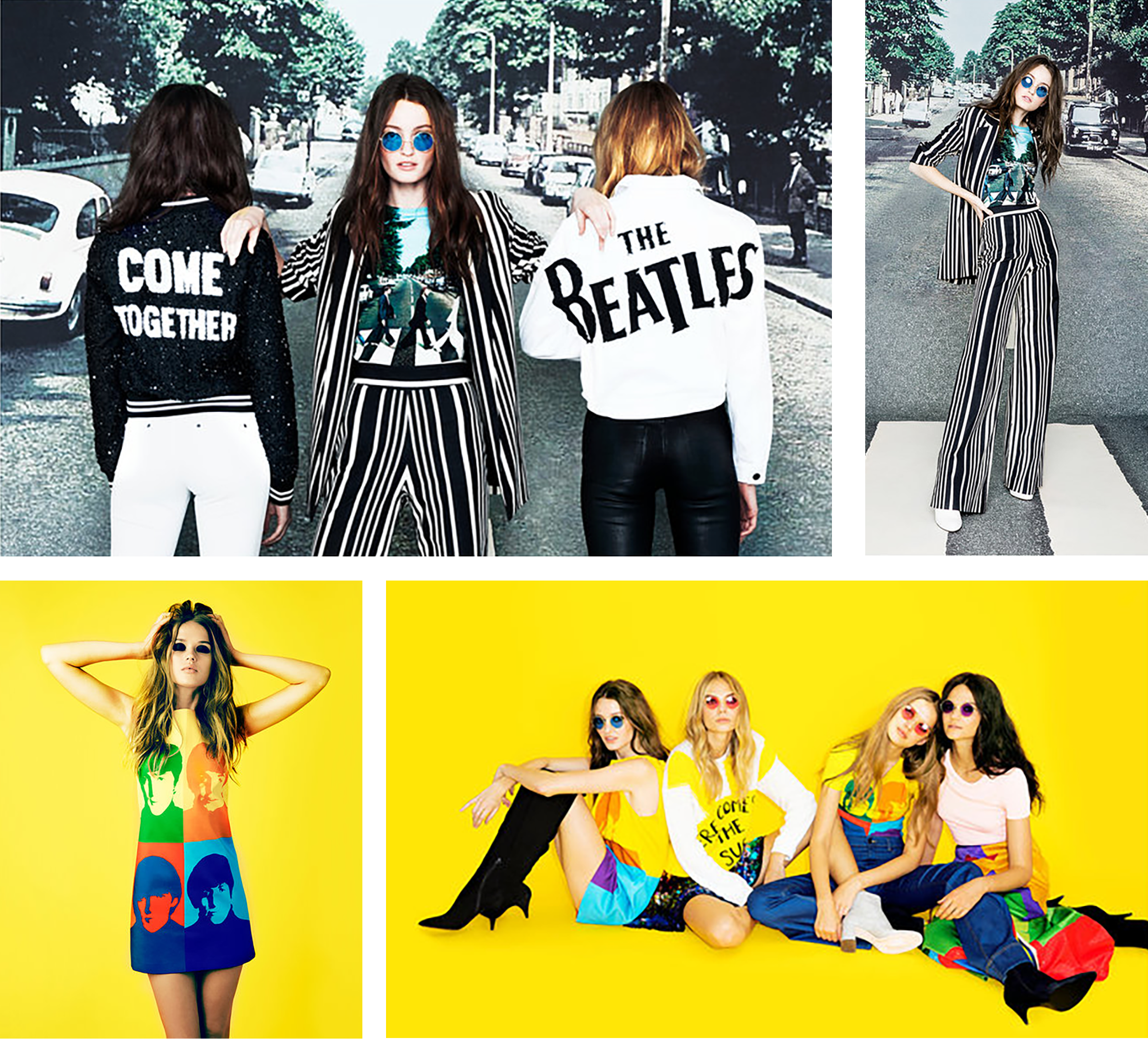 This Alice + Olivia Beatlemania campaign pays bold tribute to The Beatles, reimagining the iconic Abbey Road moment through a high-fashion lens. With vintage-inspired silhouettes, mod stripes, and statement pieces emblazoned with lyrics and logos, the styling merges rock ’n’ roll nostalgia with a modern edge. Set against a stylized crosswalk backdrop, the campaign captures the rebellious spirit and cultural legacy of the Fab Four with playful attitude and graphic flair.